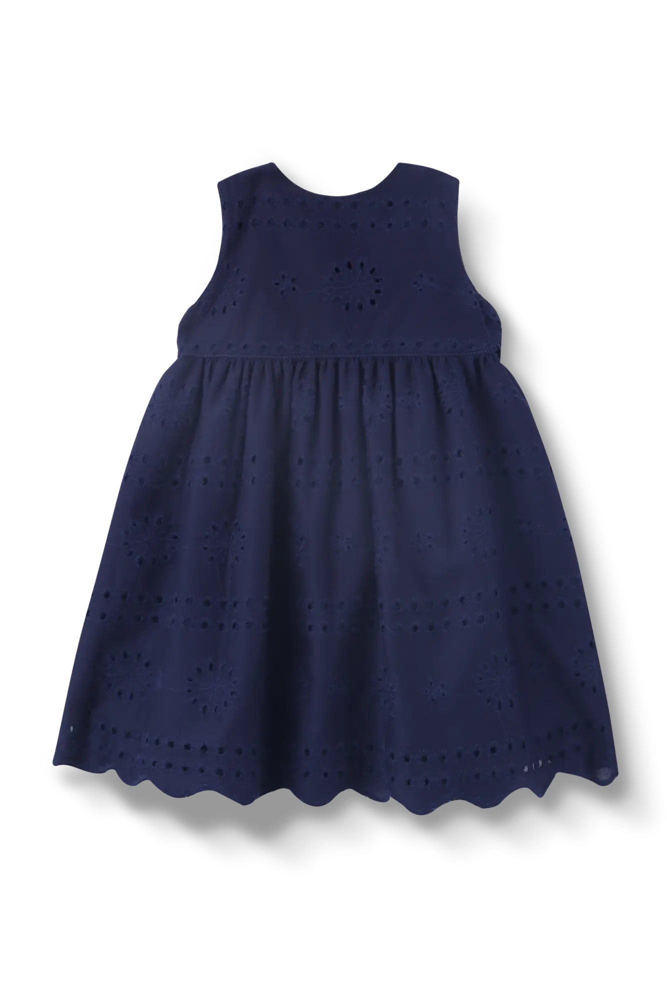 Vestido em laise 100% algodão, costas abertas, fechamento com botão de perola e laço para acinturar. Possui forro.