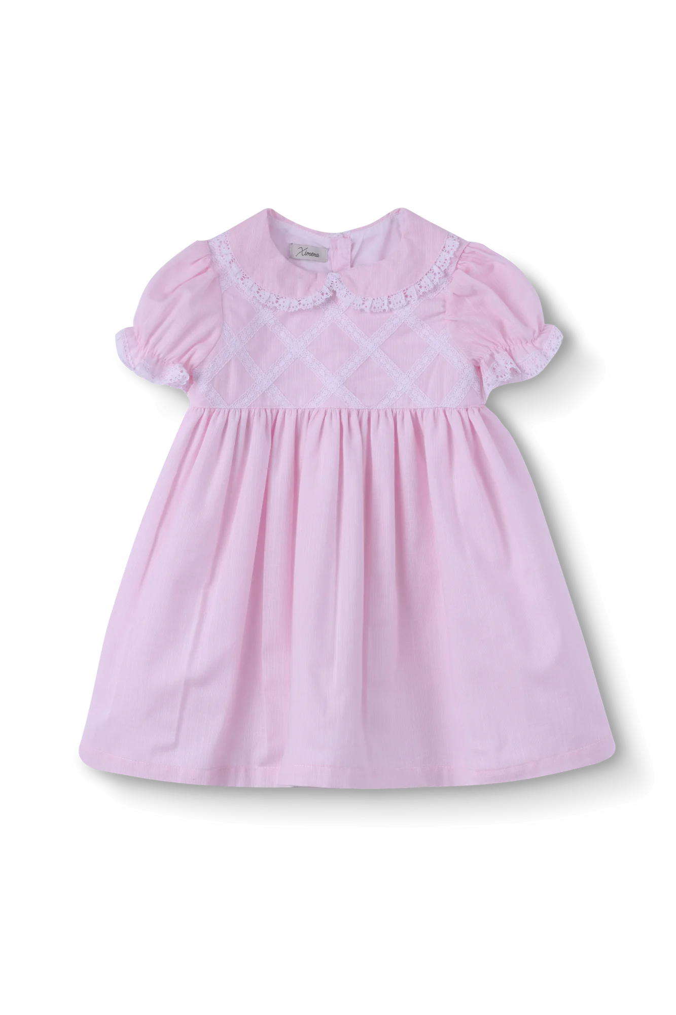 VESTIDO BEBÊ RENDAS CRUZADAS ROSA