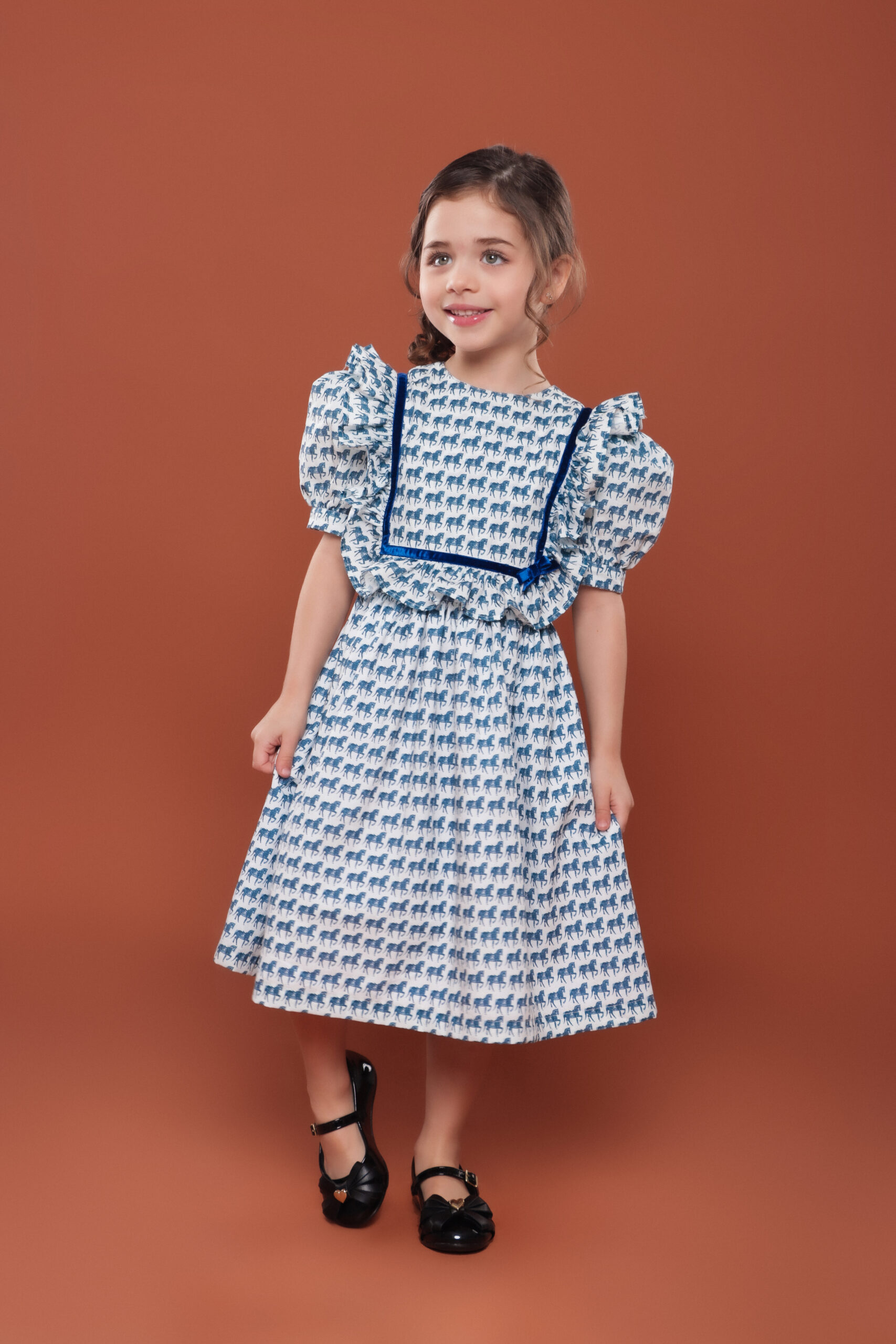 VESTIDO INFANTIL FITA VELUDO CAVALOS
