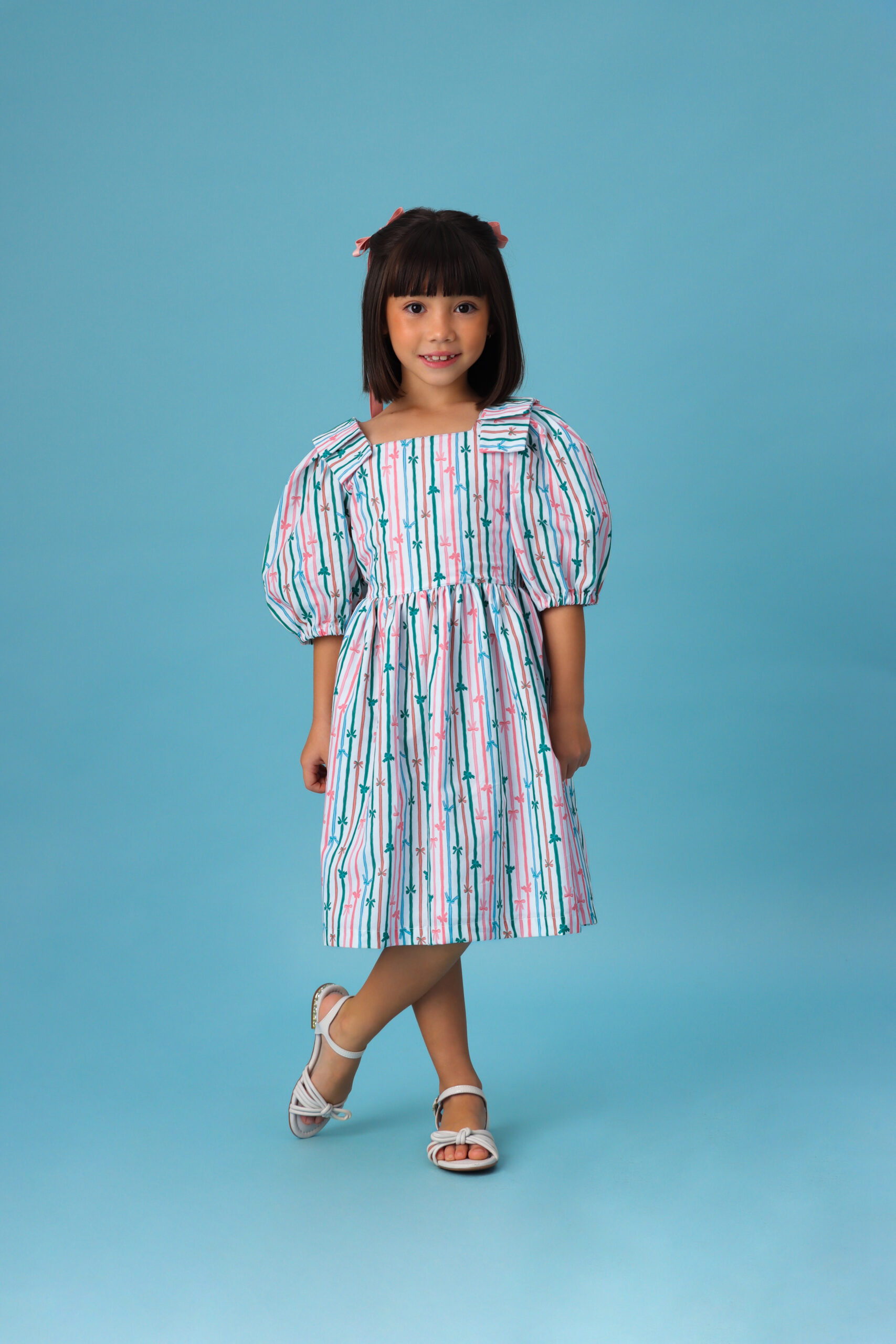 VESTIDO INFANTIL LAÇOS OMBROS ESTAMPA LAÇOS